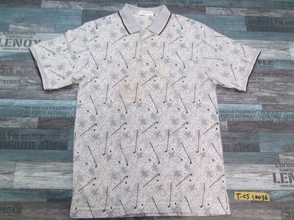 - GEORGE NICOLL ジョージニコル メンズ 総柄 ゴルフ 半袖ポロシャツ M ブルーグレー白