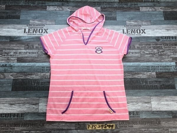 > marie claire マリクレール レディース ボーダー メッシュ フード 半袖Tシャツ ピンク