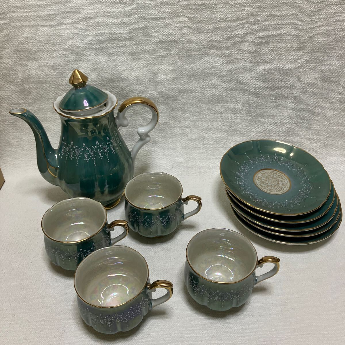 > c97 80 昭和レトロ ティーポット カップ 4個 ソーサー 5枚 セット まとめて glory CHINA アンティーク コーヒーカップ おしゃれ 汚れ有り