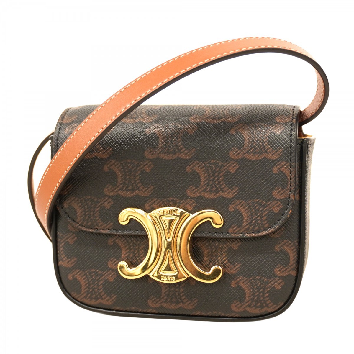 - 【5me5568-h】セリーヌ ショルダーバッグ トリオンフ PVC レザー ブラウン ゴールド金具【中古】レディース