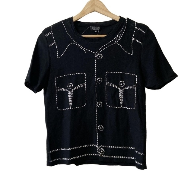 > ソニアリキエル SONIARYKIEL 半袖セーター/ニット サイズ38 M - 黒×白 レディース クルーネック/刺繍 トップス