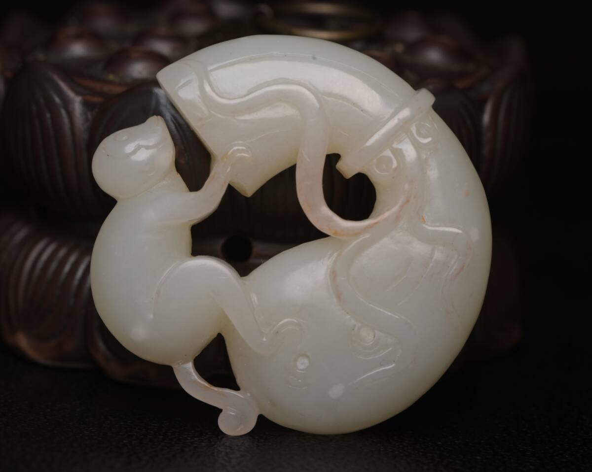 - 館蔵 和田玉彫 靈猴獻寶 時代物 古置品 賞物 貴重 稀少珍品 中国古美術 古美味 蔵出