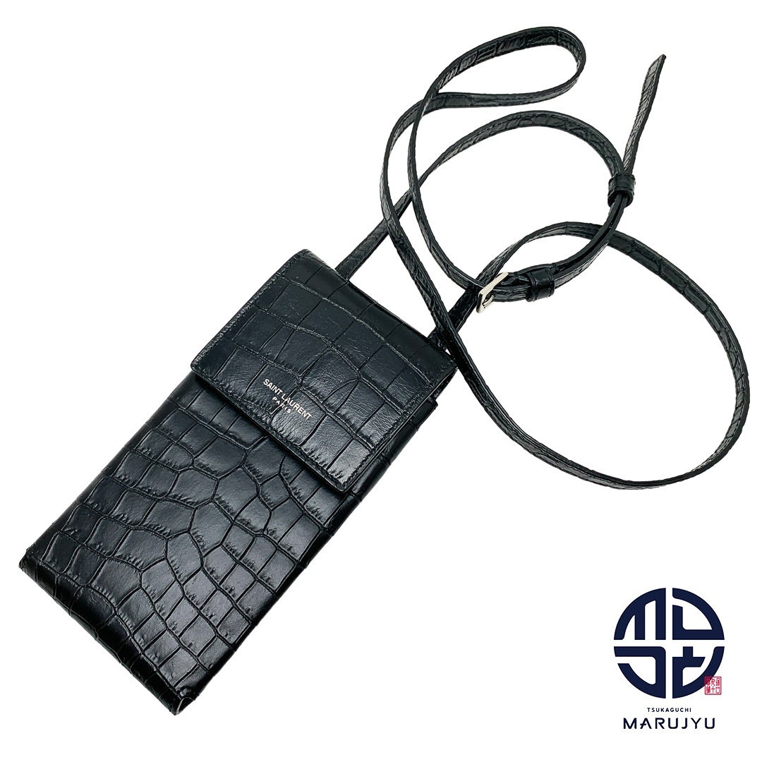- SAINT LAURENT サンローラン フォンショルダー 667713 DZE0E クロコ型押しレザー ブラック 黒 スマホケース ブランド 小物