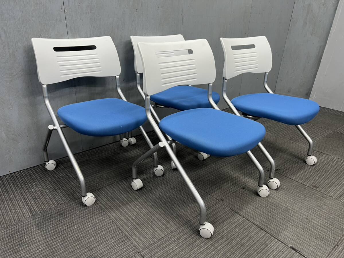 - ◆管747◆自社便対応地域あり◆アスクル◆ネスティングチェアー 4脚セット◆会議 ミーティング◆ブルー系