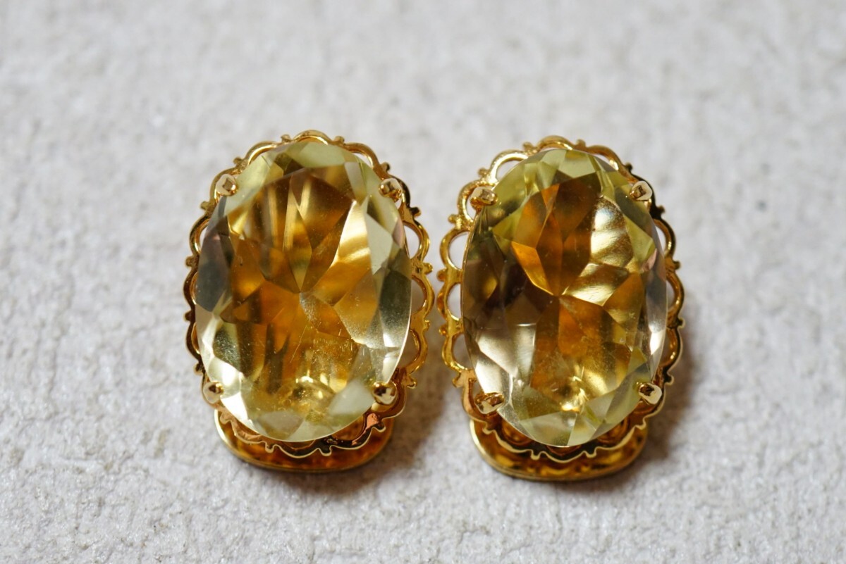 > 112 天然レモンクォーツ ゴールドカラー イヤリング 両耳揃い ヴィンテージ アクセサリー 天然石 宝石 色石 カラーストーン 装飾品