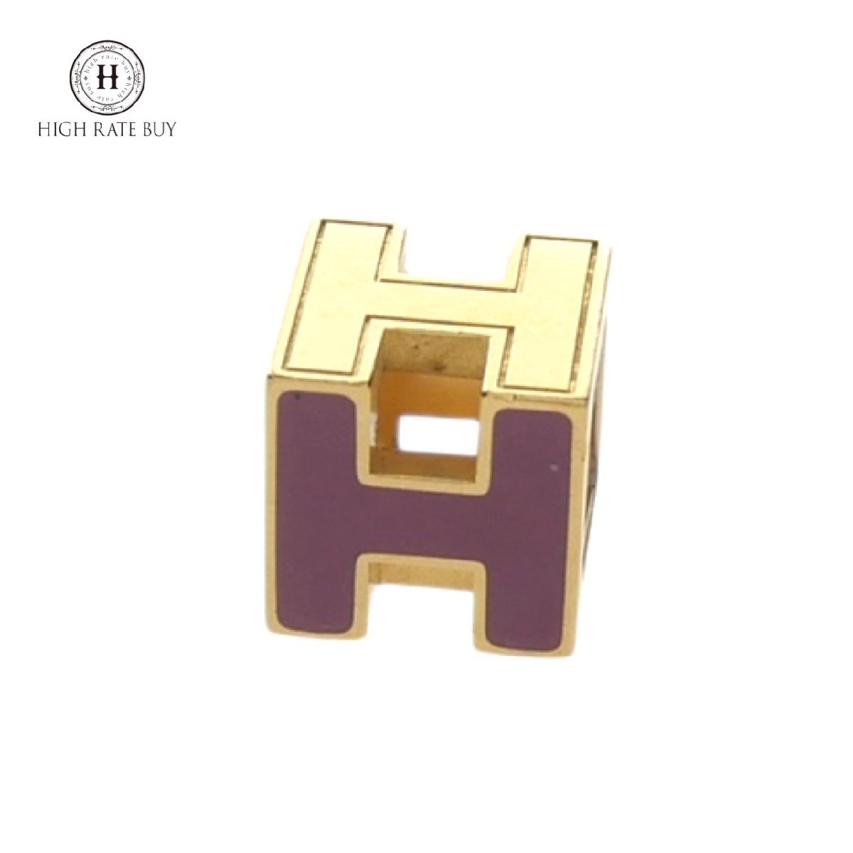 - 1円スタート HERMES エルメス カージュドアッシュ Hキューブ ネックレストップ スクエア ゴールド パープル アクセサリー レディース