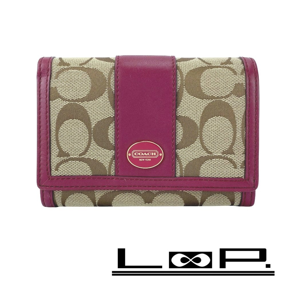> ■美品■ コーチ 二つ折り 財布 ウォレット L字ファスナー シグネチャー レザー キャンバス ブラウン マゼンタ【466755】9