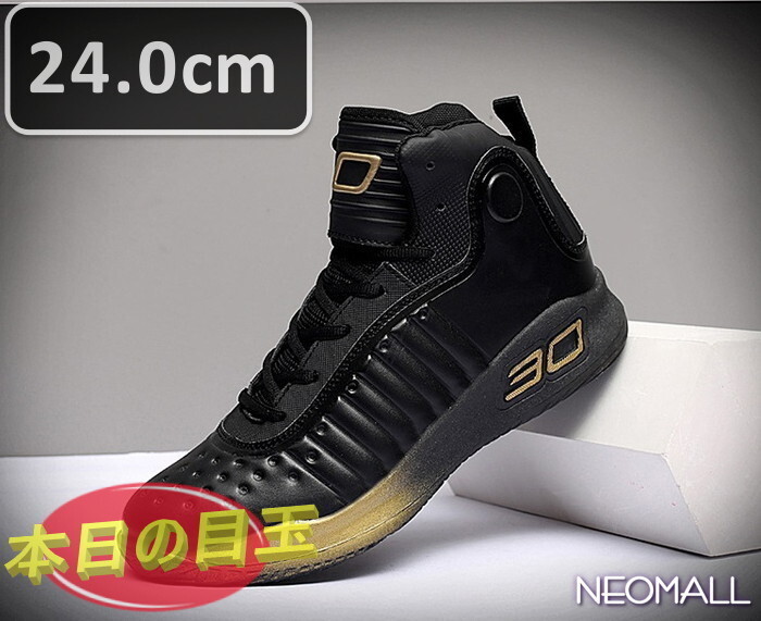 - 1スタ ☆ メンズ スニーカー 24.0cm ブラック × ゴールド 靴 シューズ 防滑 ランニング ジョギング 通勤 通学 旅行 【811】
