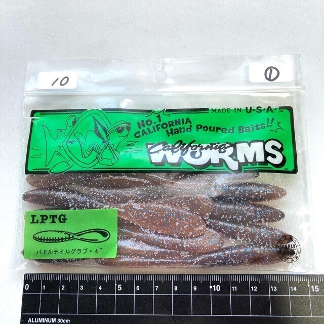 - 811114 新品 カリフォルニアワーム パドルテールグラブ 4インチ 10本① CALIFORNIA WORM PADDLE TAIL カスミスペシャル オールド品