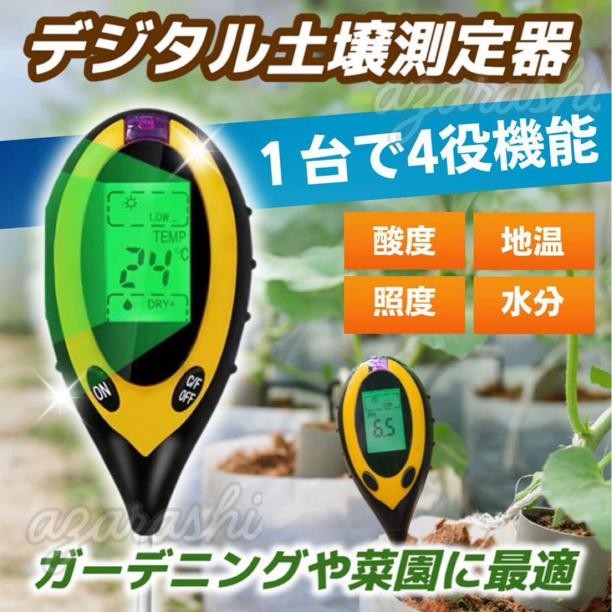 > 土壌測定器 土壌テスター デジタル式 PH 酸度計 水質検査 地温測定 メーター 水分 照度 土壌改善 PH ペーハー測定 農業 園芸用品 家庭菜園