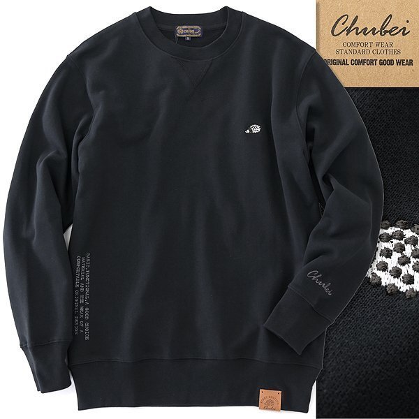 - 新品 CHUBEI チュウベイ 刺繍 スウェット クルーネック トレーナー M 黒 【CH1451085_99_M】 革タグ プルオーバー ブラック