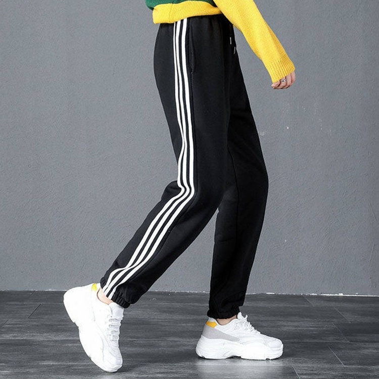 - 送料無料★即納 新品 裏起毛 防寒 リラックスウェア 部屋着 ライン入り 可愛い★3本線/ブラック
