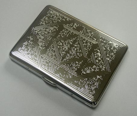 《< 新品 真鍮製 メタルシガレットケース 9本100mm(12本70mm) シルバーアラベスク両面同柄(91429) >》