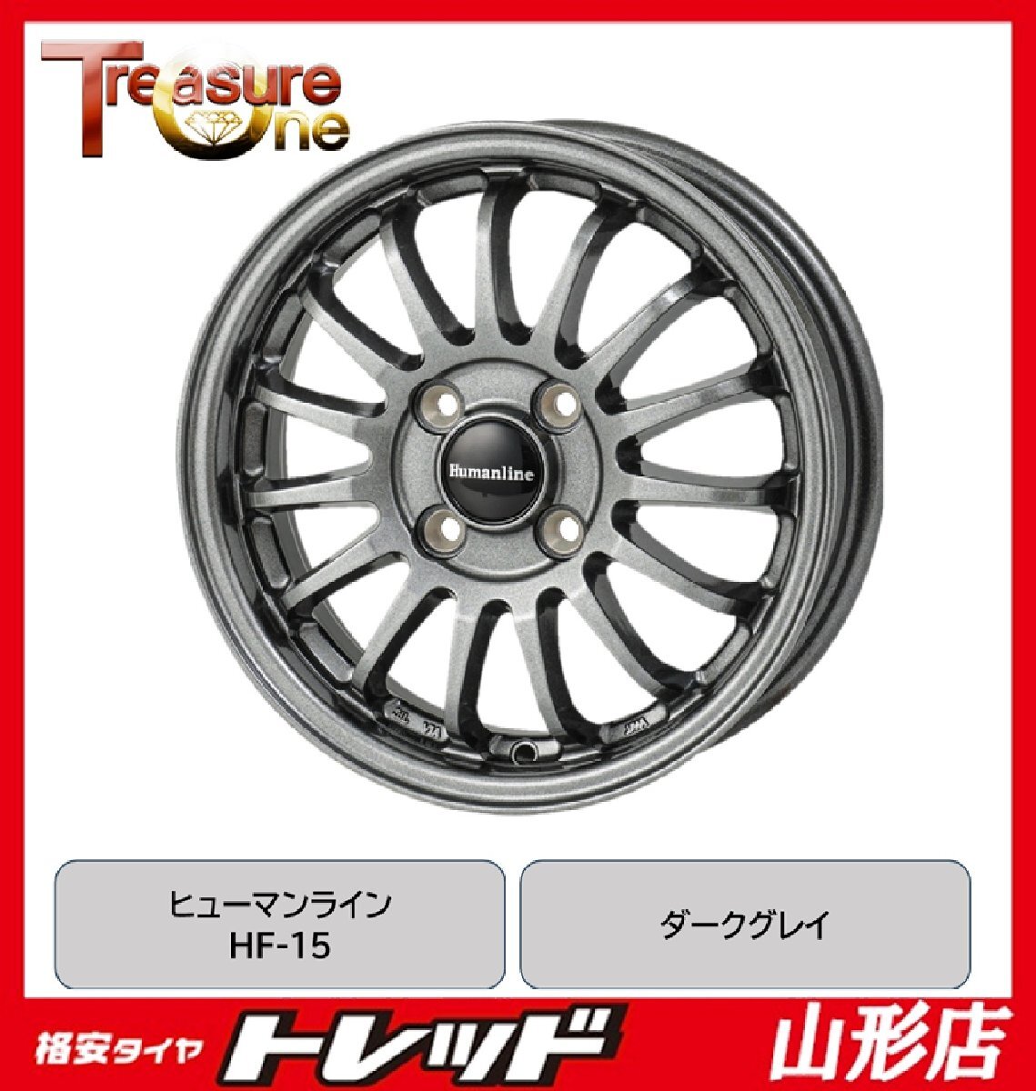 > 山形店【新商品】 新品 アルミホイール 4本セット ヒューマンライン HF-15 13インチ4.0J 4H100 +43 ダークグレー 軽自動車