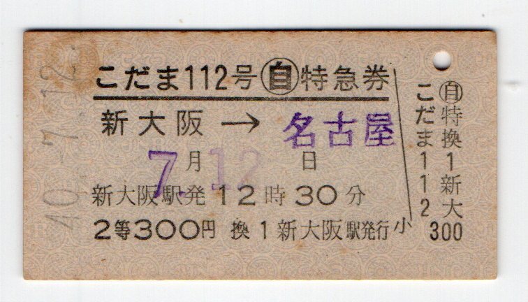 - ☆ 国鉄 こだま112号 〇自 2等 特急券 S40年 新大阪駅 ☆