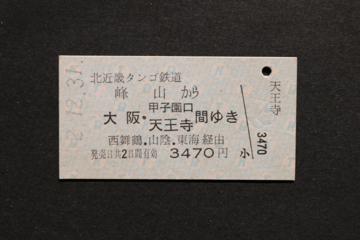 - 北近畿タンゴ鉄道 峰山から 3駅間ゆき 3470円