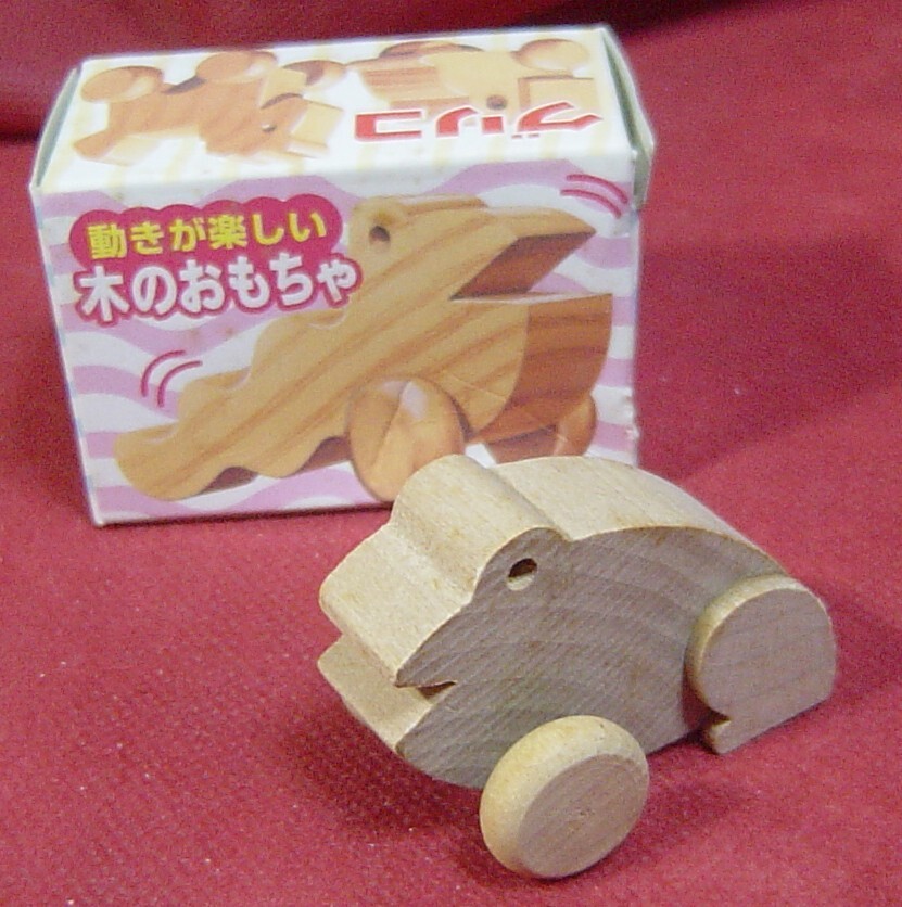 - 26C43-03. グリコ おまけ 木製 カエル 玩具 元箱付き