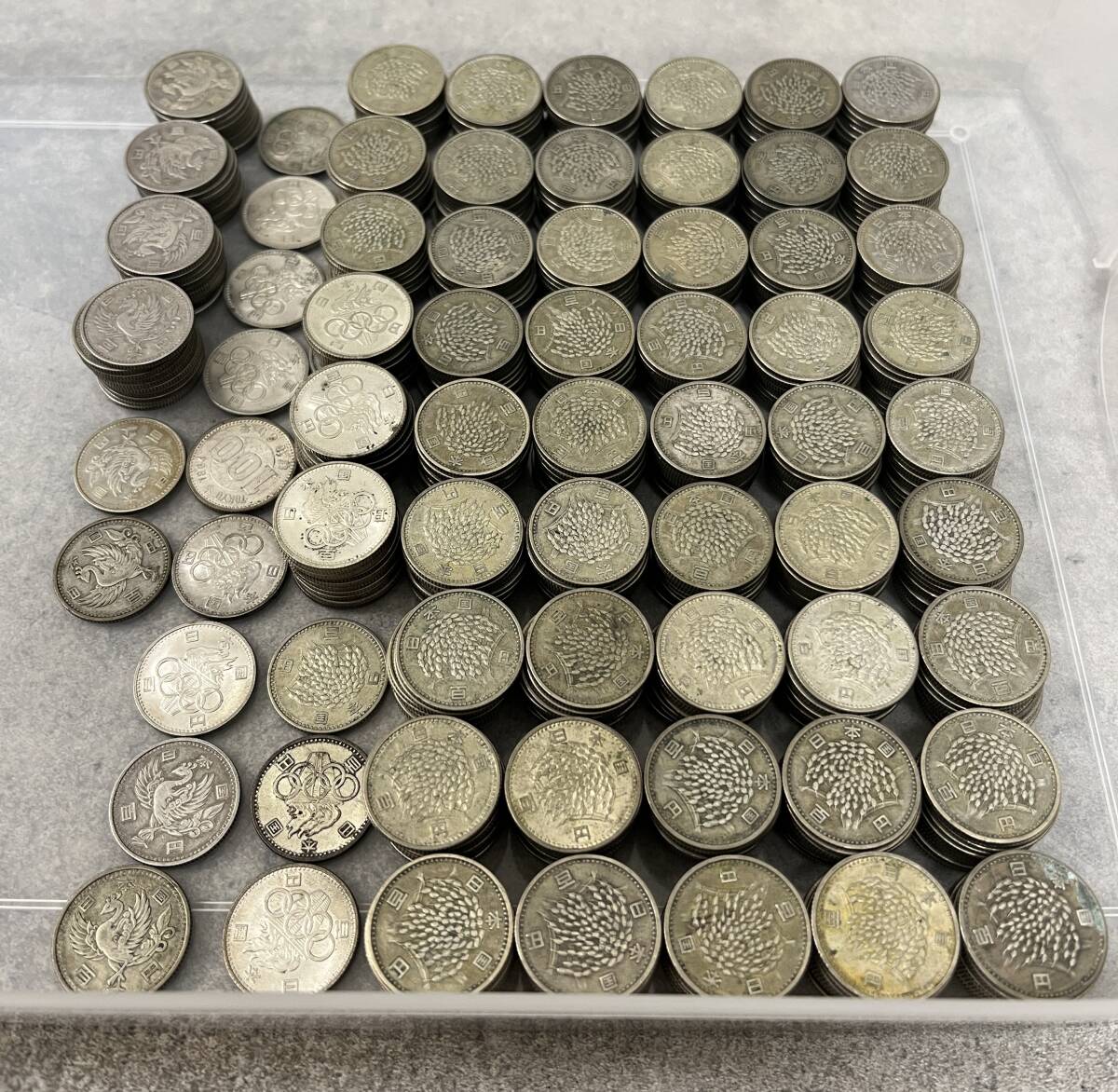 - #30745A 100円銀貨 まとめ 合計564枚 稲穂481枚 鳳凰44枚 オリンピック39枚 56400円 総重量2kg以上(トレイ除く) 古銭 記念硬貨 保管品
