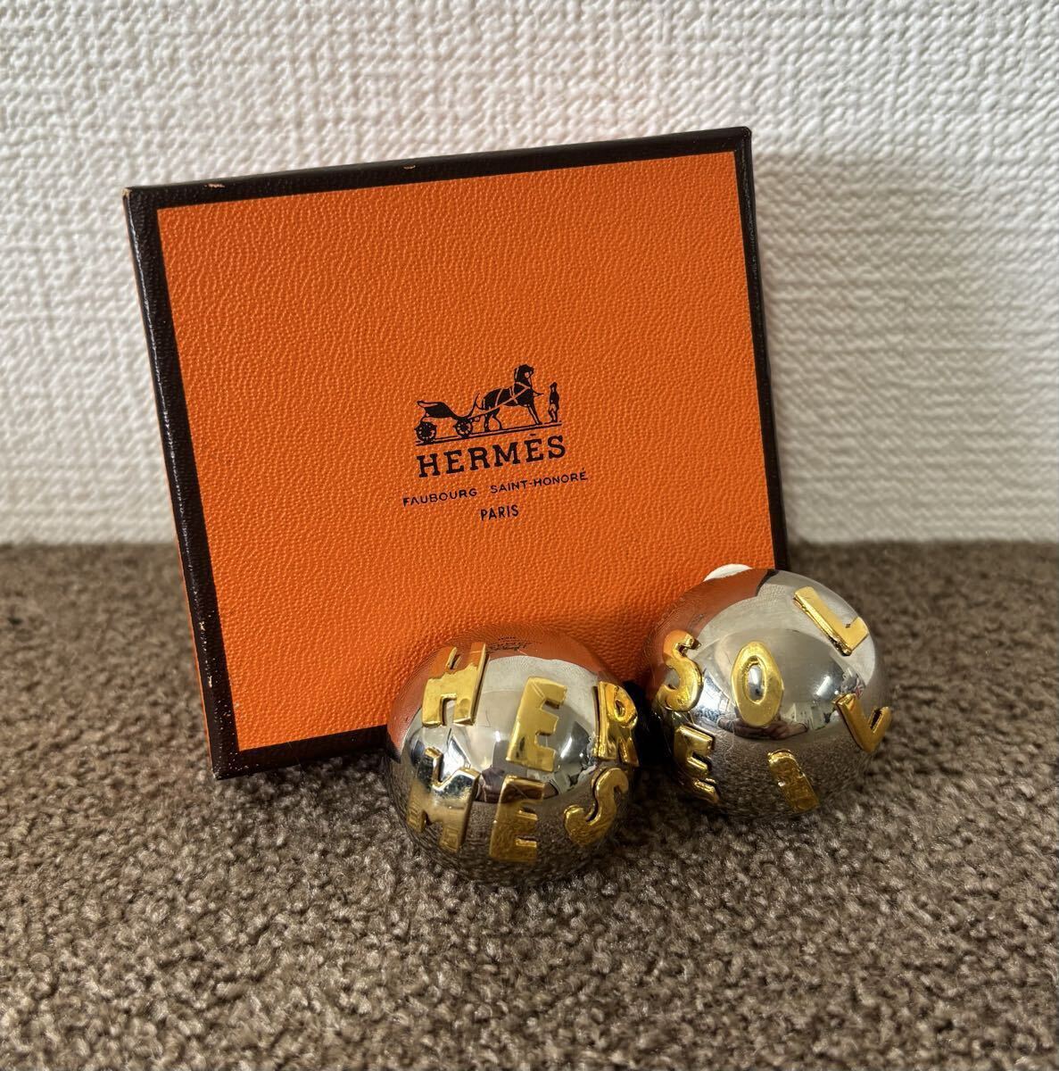 - 100185★HERMES/エルメス★HERMES SOLEIL★ロゴ★ボールイヤリング★シルバーカラー★レディース★イヤリング★クリップ式★中古品