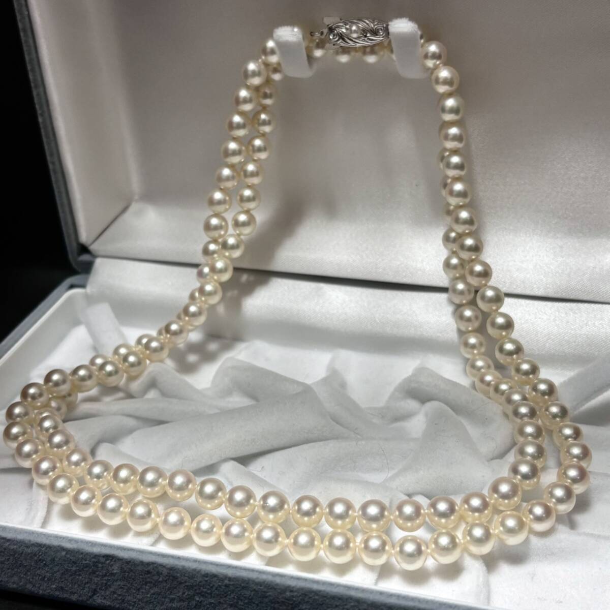 - 【テリ最強】TASAKI/田崎 あこや真珠 ロング 2連 パール ネックレス 約6.5mm シルバー金具 pearl necklace 54g 88cm アコヤ 本真珠