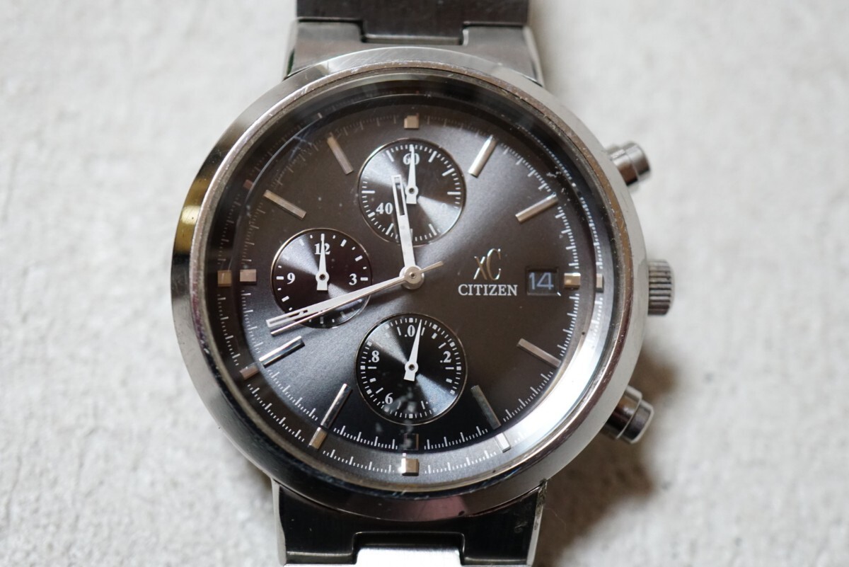 > F2031 CITIZEN/シチズン XC クロスシー クロノグラフ 黒文字盤 メンズ 腕時計 アクセサリー ヴィンテージ ブランド クォーツ 不動品