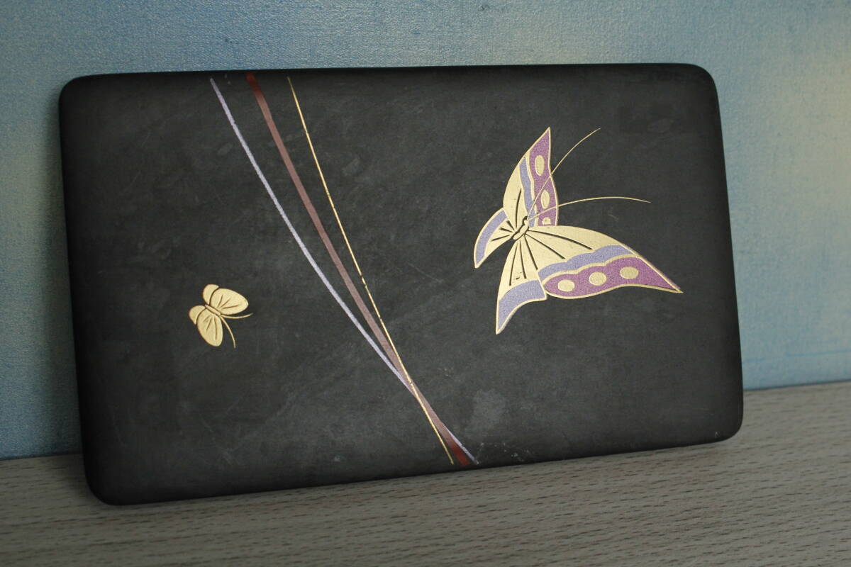 - ※未使用品 硯 蝶模様入り 約15.5x9x3.5㎝ 1㎏