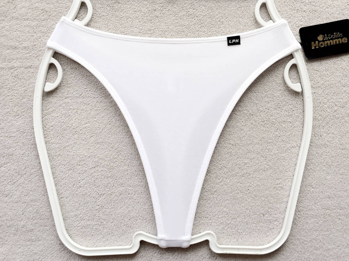 > 【ラ・ポームオム/La-Pomme Homme】なめらか2WAYマイクロファイバー★シンプル&ストレッチ★ハイレグTバック/白♪新品/日本製