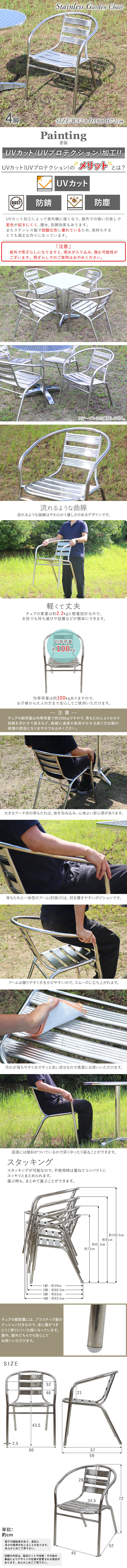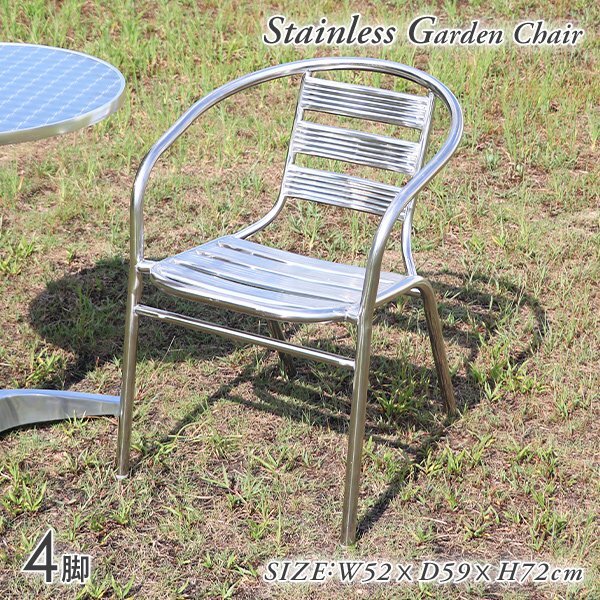 - 送料無料 ステンレスチェア 4脚セット UVカット ガーデンセット ガーデンチェアー スタッキングチェア ステンレス製 SUS201 庭