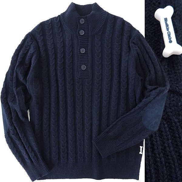 - 新品 シェルティークラブ ケーブル スタンドネック ニット M 紺 【SH444341_79_M】 秋冬 Sheltie Club ウール混 ウォッシャブル