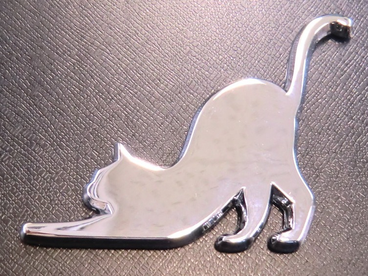 - 同梱可能<未使用・猫(背伸び シルバー)>車・バイクのワンポイント エンブレム・ステッカー・デカール・ガーニッシュ 傷隠し 3D 金属製