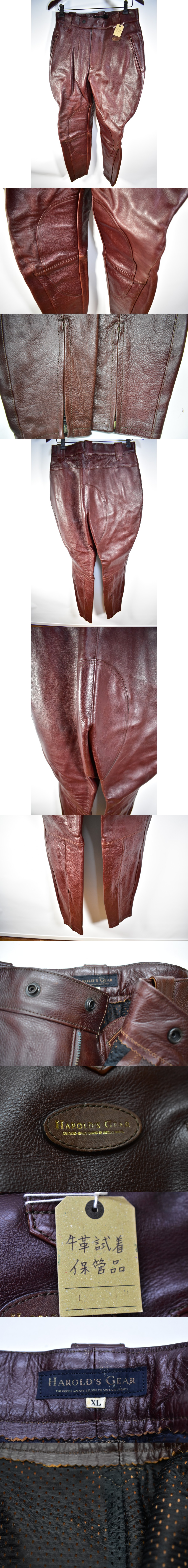 > 未使用 タグ付 HAROLD'S GEAR 牛革 ジョッパーズパンツ XLサイズ 茶 [ハロルズギア][レザー][ライダース][革パン][k5]12