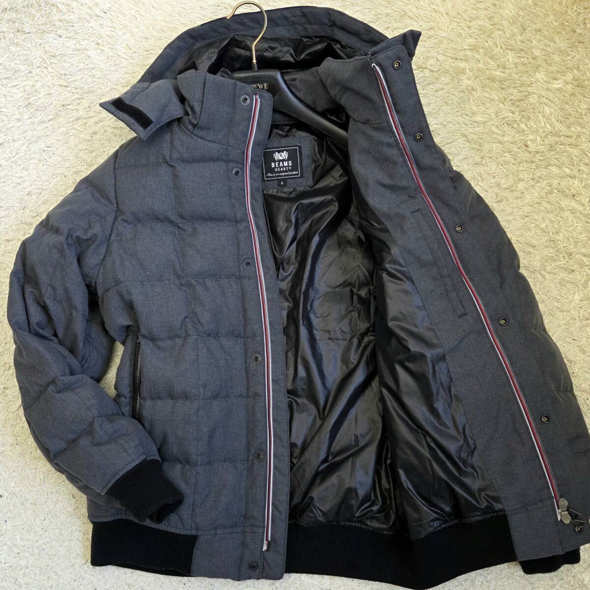 - ビームスハート【トルコロール】BEAMS HEART ダウンジャケット アウター 中綿 ダウン&フェザー キルティング Wジップ フード着脱 グレー S