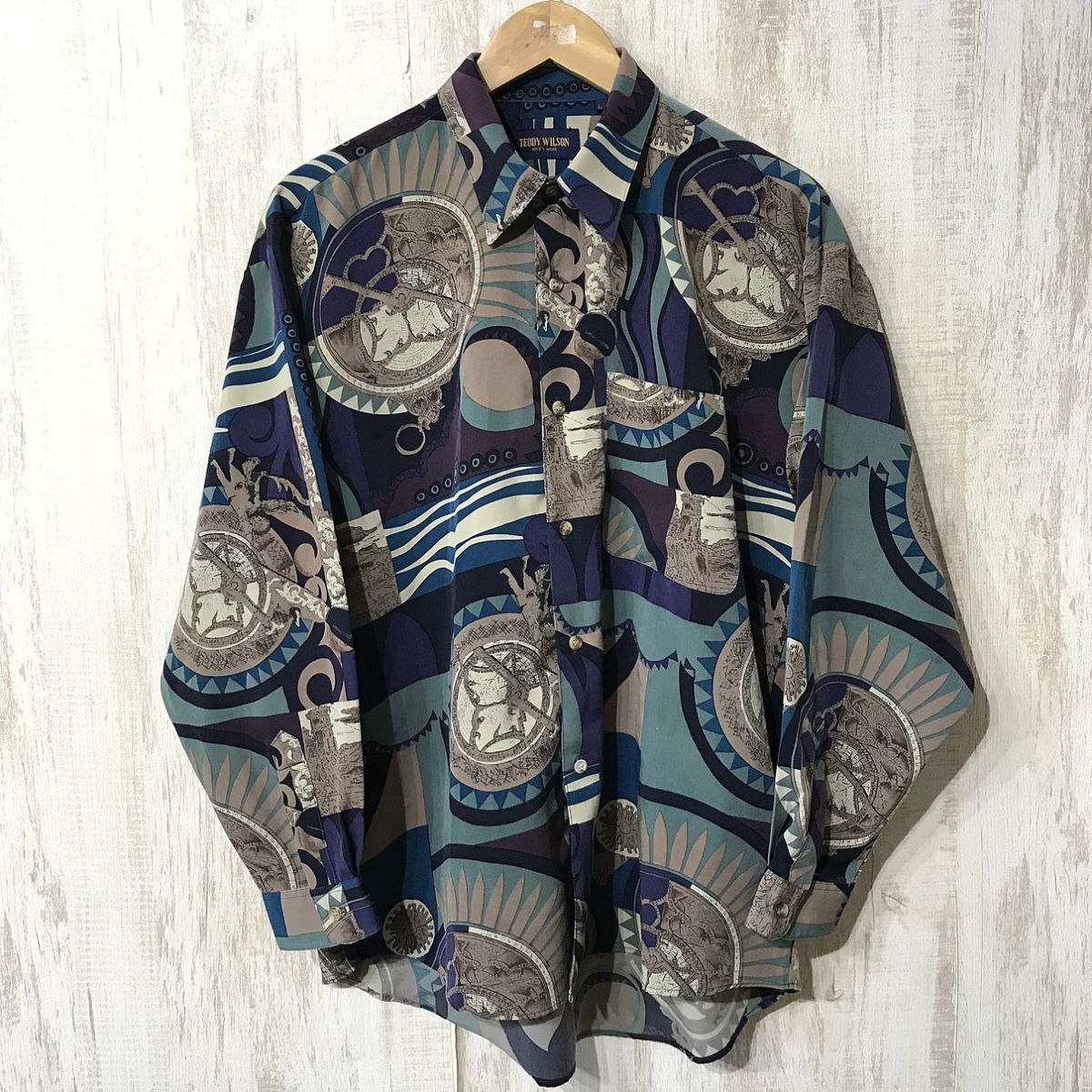 - 215☆【90s ヴィンテージ 古着 総柄レトロシャツ】TBDDY WILSON マルチカラー L