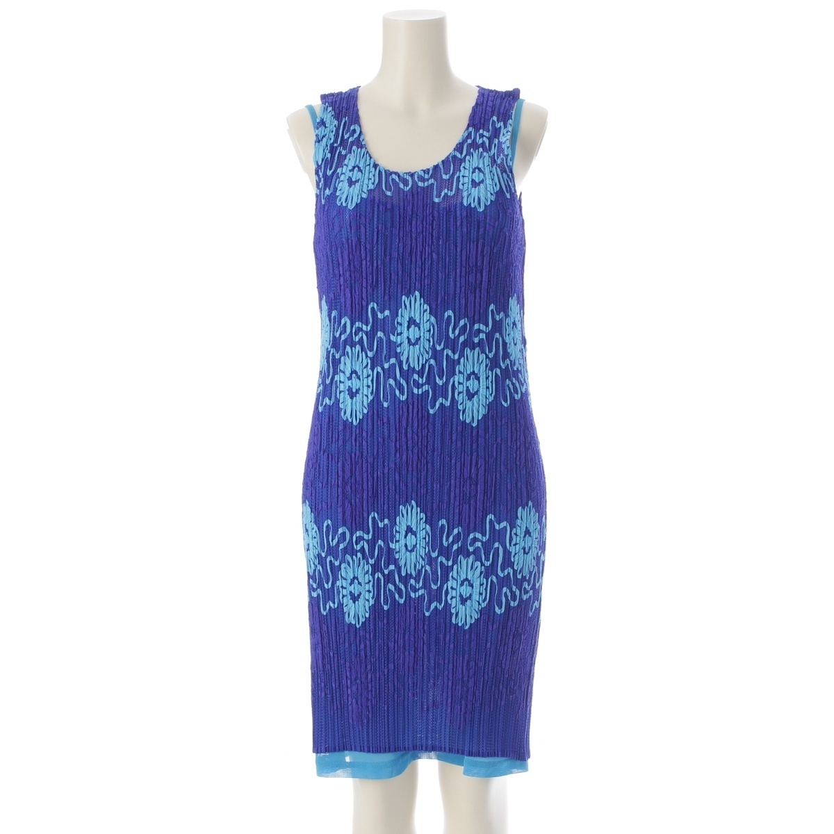 - プリーツプリーズ イッセイミヤケ リボンテープ装飾 プリーツ加工 ワンピース PP06-JH910 ブルー 2【中古】