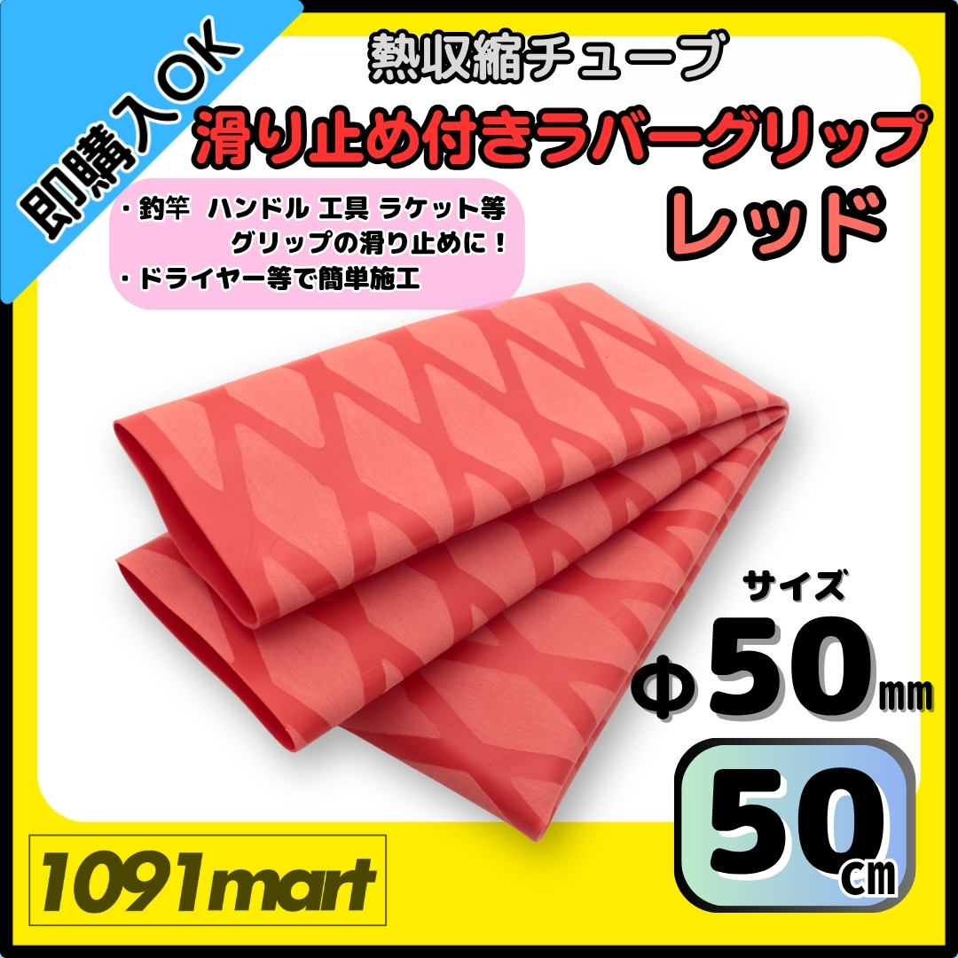 - 【送料無料】熱収縮チューブ ラバーグリップ Φ50㎜ 50㎝ レッド 滑り止め加工 グリップの補強に 釣竿 工具 ラケット