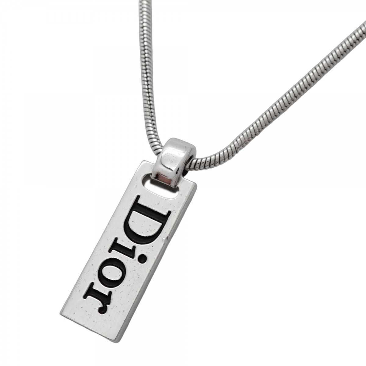 - ★SALE【5jmb0239】クリスチャンディオール ネックレス ディオールロゴ プレート メタル シルバー ブラック【中古】レディース