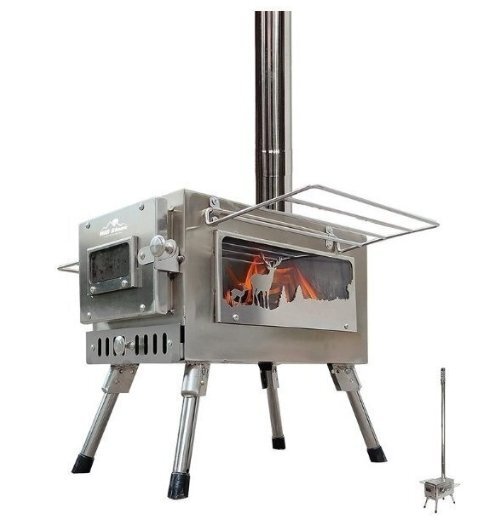- 薪 ストーブ アウトドア 調理器具 暖炉 キャンプ 折りたたみ 煙突付き 耐熱ガラス窓付き 棚付き 組立式 屋外 焚き火台 BBQ 暖房 ステンレス