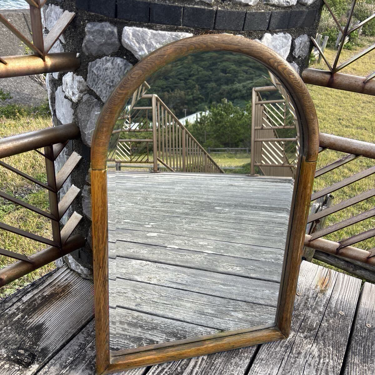 > ウォールミラー アーチミラー 欅 ヴィンテージ インテリア ミラー 木製 鏡 アンティーク アーム型 古木 サイズ62×42×2 木目