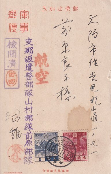 - 軍事郵便 1次昭和10銭&5銭貼 航空便 櫛型印 第四十一野戦 16.10.18 ★★★ エンタイア