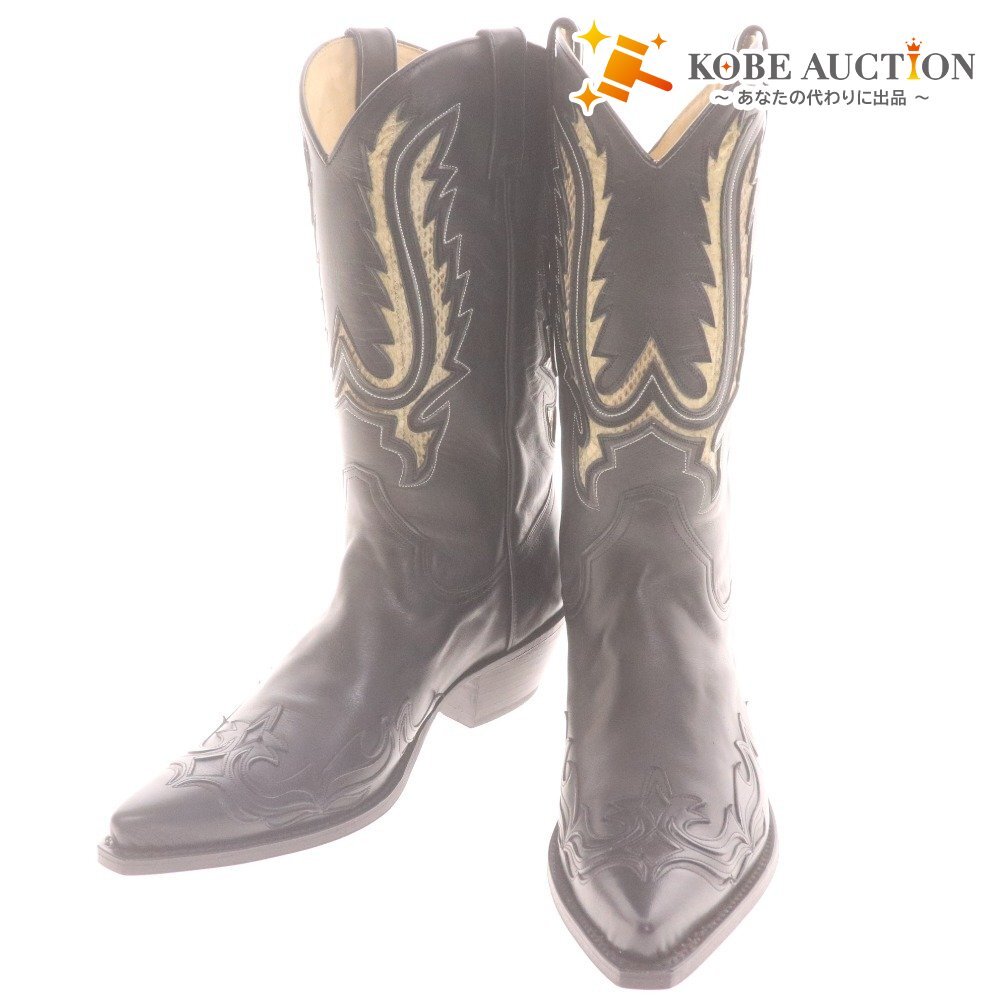 > ■ TONY MORA トニーモラ ウエスタンブーツ 2326 靴 牛革 ミドル ウィング 蛇柄 メンズ レディース 40 (25.0cm相当) ブラック 付属品付き
