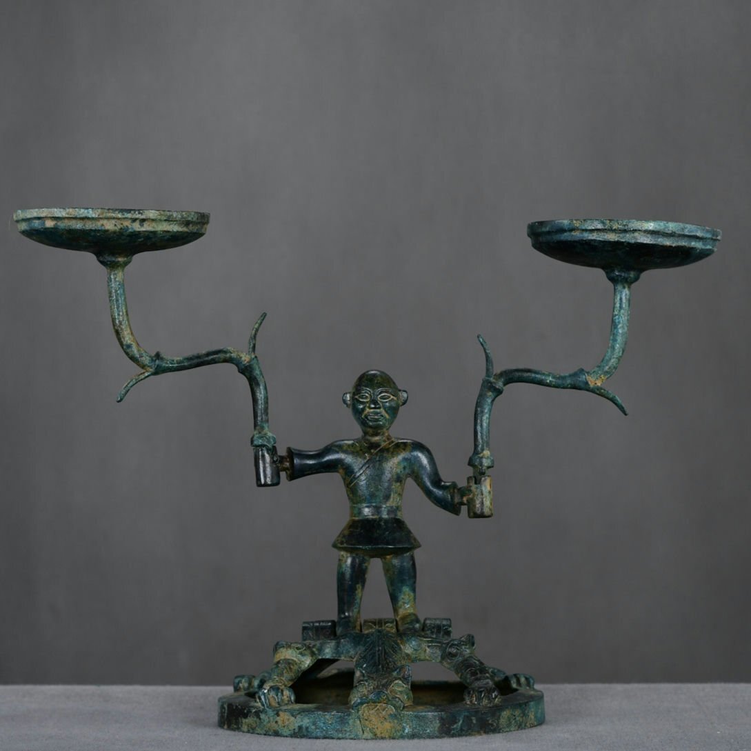 - ◆羽彰・古美術◆Y7980戦漢 青銅器 青銅人灯 細密細工★古置物★古賞物★古擺件★蒐集家放出★唐物