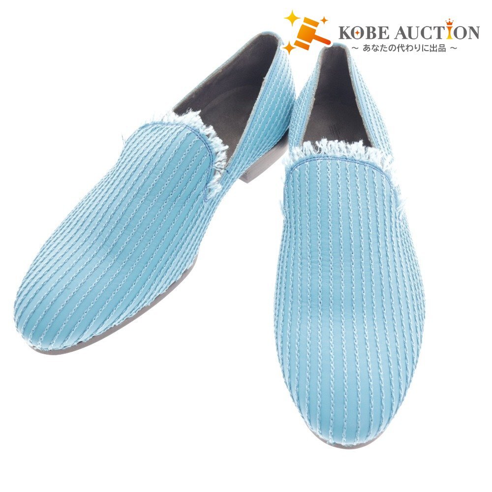 > ■ イシュム スリッポン ローファー 靴 チェーンステッチ チェイン 日本製 メンズ レディース 41 ブルー 牛革 箱付き