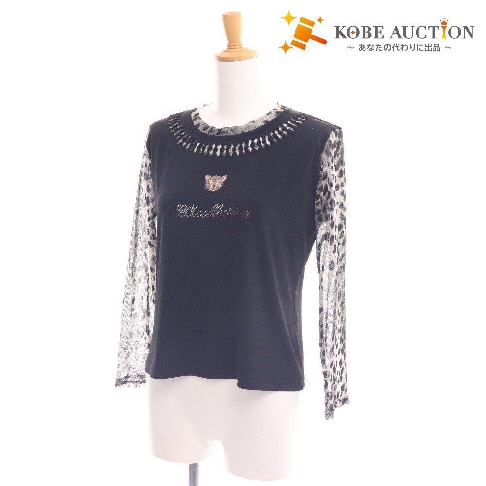 > ■ Private FASHION LAND Tシャツ ロンT 長袖 OS-1286 トップス ヒョウ柄 ワッペン レディース ブラック