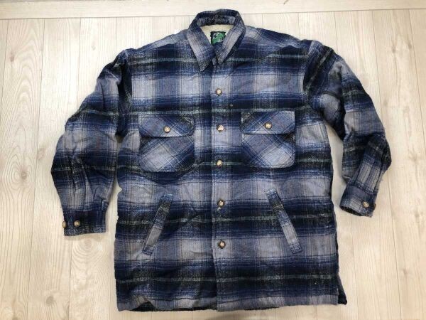 - andlo オールド アメカジ アウトドア 古着 シャドーチェック 裏ボア 中綿 シャツ ジャケット アウター アクリル100% M 青
