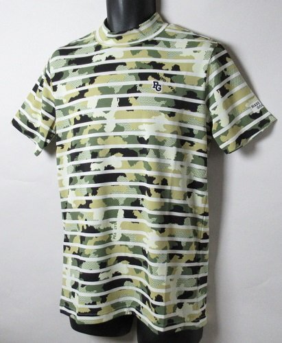 > 新品 パーリーゲイツ/PEARLY GATES ゴルフ モックネック カモ柄 ストレッチ半袖シャツ 定価17600円/5(L)/053-2167503/ベージュ