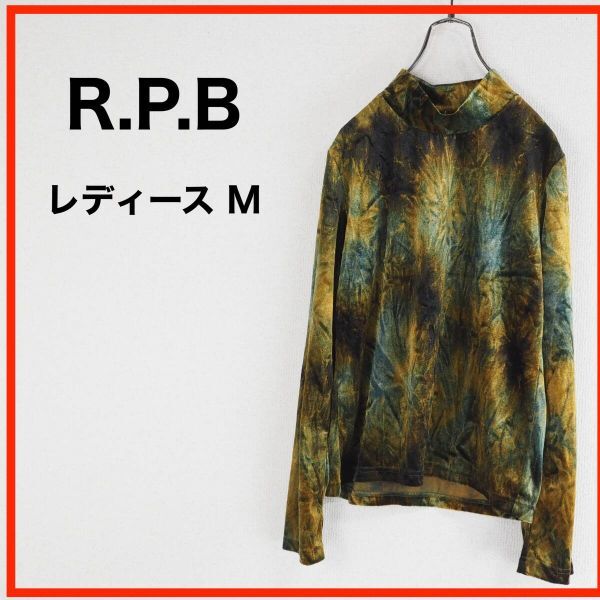 - A3863★新品★R.P.B*レディース*長袖カットソー*ハイネック*総柄*2*M*焦げ茶・緑