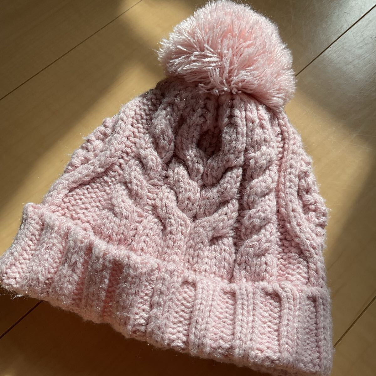 - ベビーギャップ ピンク ケーブル編み ニット帽 ポンポン付き 52cm
