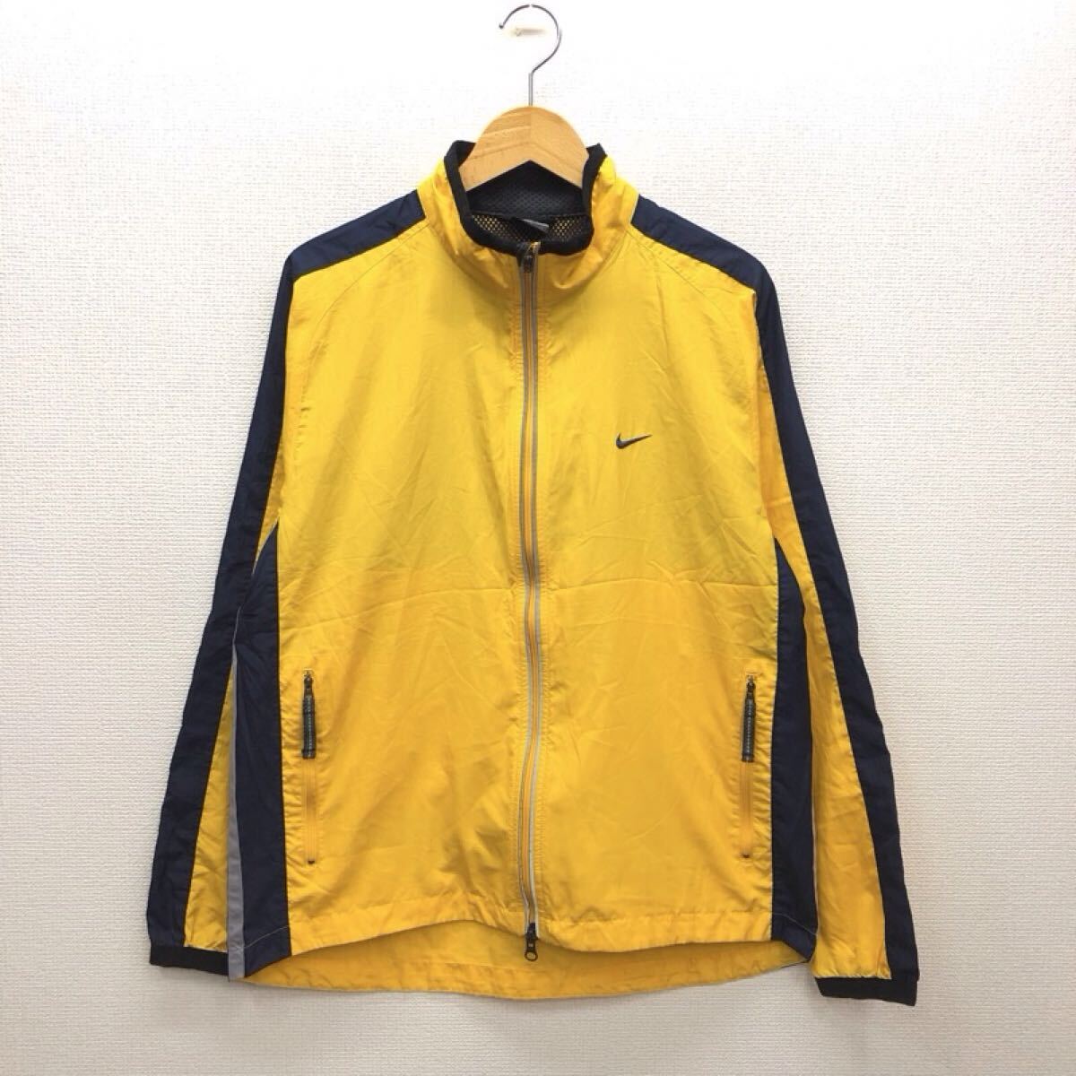 > 【GK005】NIKE Mサイズ ウィンドブレーカー イエロー 袖口ゴム ダブルジップ 薄地 ブランド古着 ナイキ スポーツウェア 送料無料