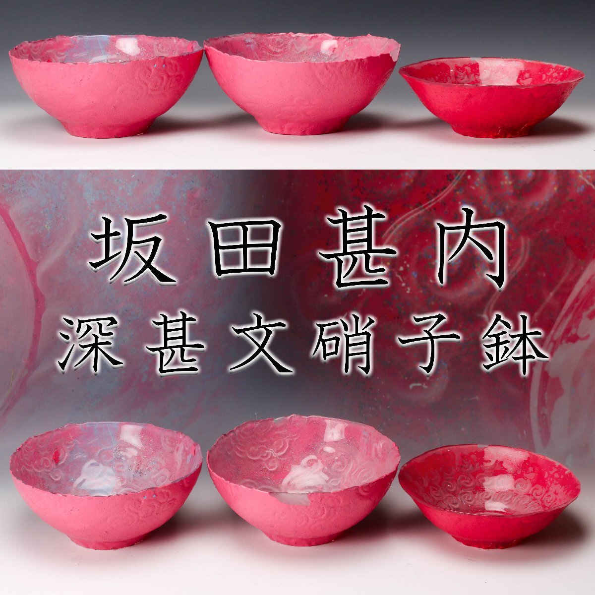 【佳香】坂田甚内 深甚文硝子鉢 三客 作陶展リーフレット 本物保証