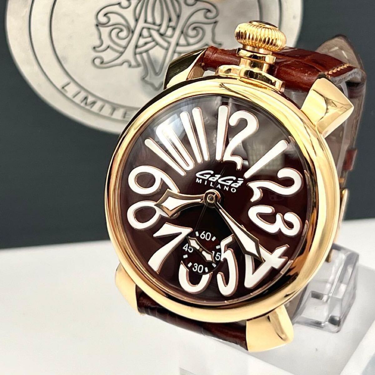 > ガガミラノ GaGaMILANO 時計 メンズ マヌアーレ 48 裏スケルトン 自動巻き 付属品有り ゴールド ブラウン スモールセコンド